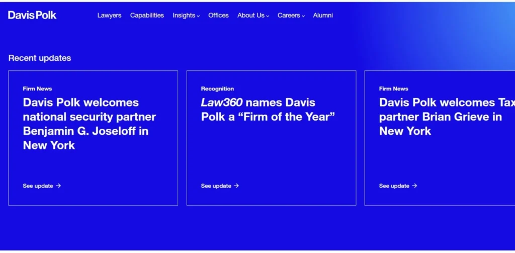 | Davis Polk & Wardwell | Capital Markets, Financial Regulation | 11 offices in major cities | davispolk.com |