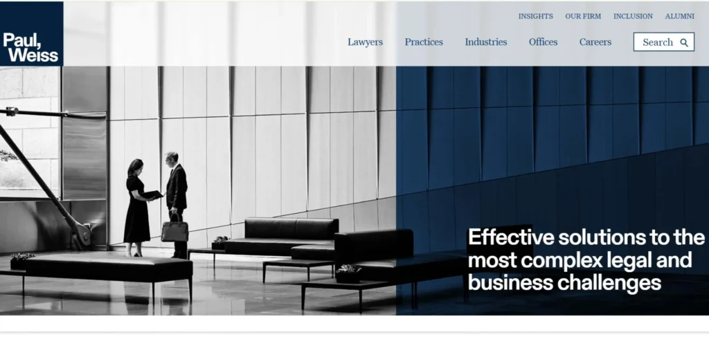 Paul, Weiss was the first to engage litigators and corporate lawyers to collaborate on its M&A deals to offer its clients a combination of strategic advice. The diversity and the progressive workplace policies have seen the firm emerge as a pioneer in terms of promoting the development of an inclusive excellence, as well as upholding the highest levels of the legal representation within the scope of practices.